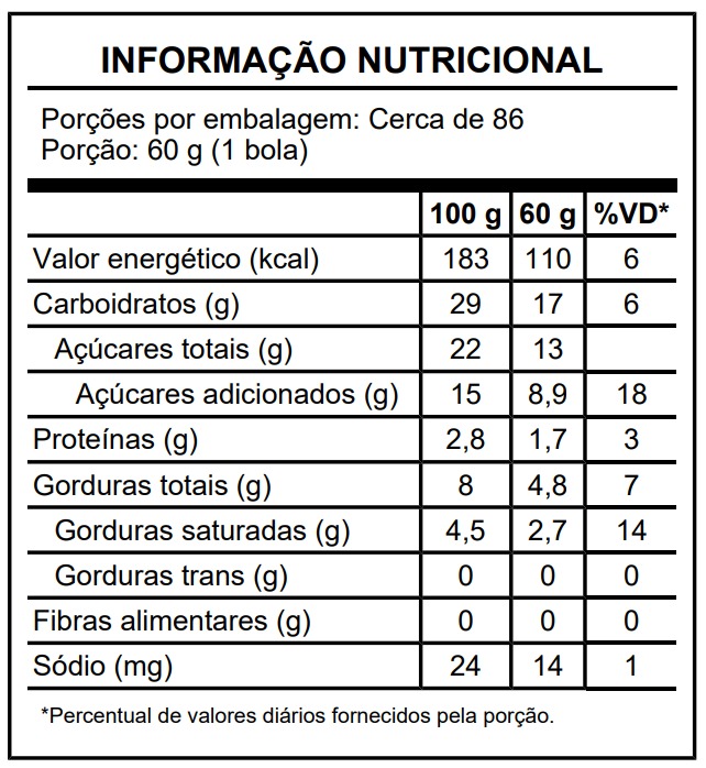 Tabela nutricional